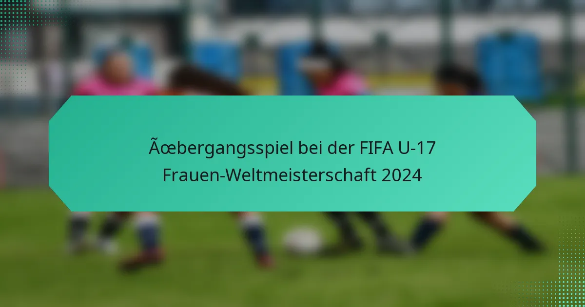 Das Übergangsspiel im FIFA U-17 Frauen-Weltmeisterschaft 2024 hebt die Bedeutung schneller Wechsel zwischen Verteidigung und Angriff hervor, wodurch Teams die Schwächen ihrer Gegner ausnutzen können. Dieser taktische Ansatz ist entscheidend für die Schaffung von Torchancen und die Verstärkung defensiver Aufstellungen, was ihn zu einem zentralen Element des Turniers macht. Teams wie die Vereinigten Staaten, Deutschland und Brasilien haben ihre Fähigkeiten bei der Umsetzung effektiver Übergangsstrategien unter Beweis gestellt und betonen Geschwindigkeit und Effizienz auf dem Spielfeld.